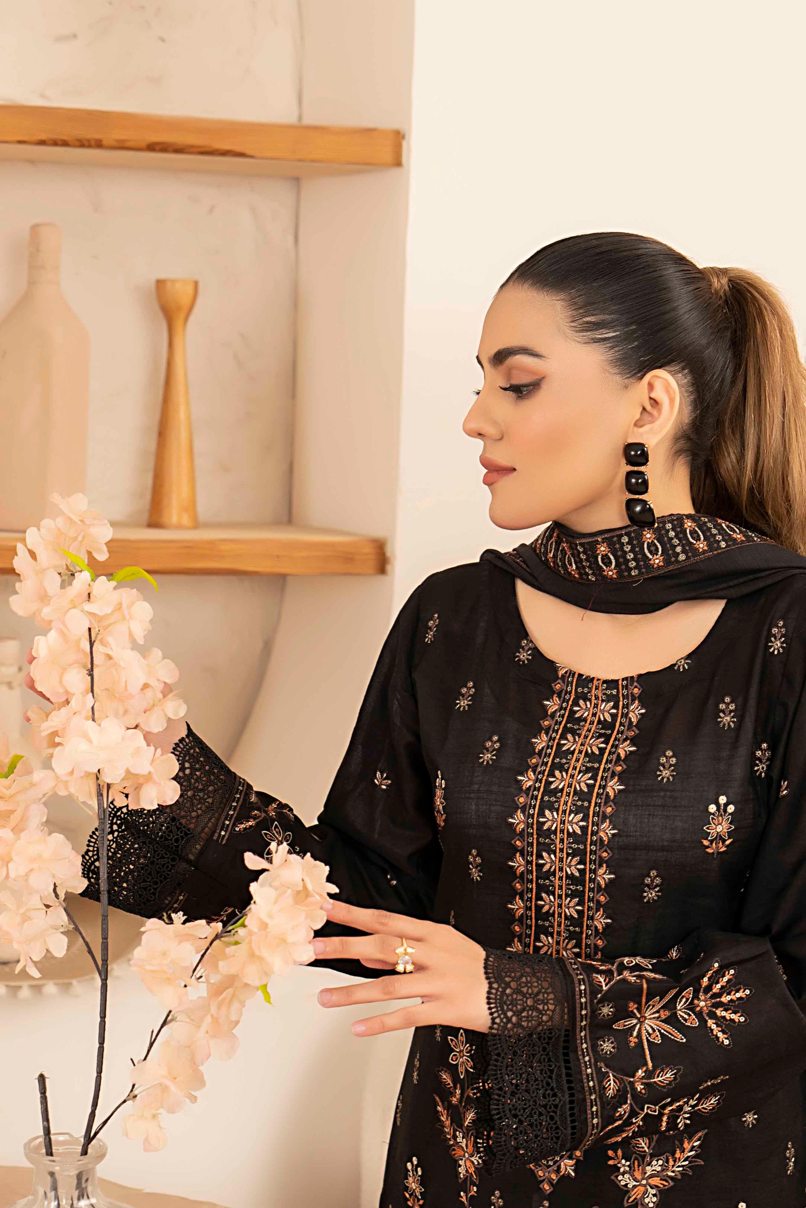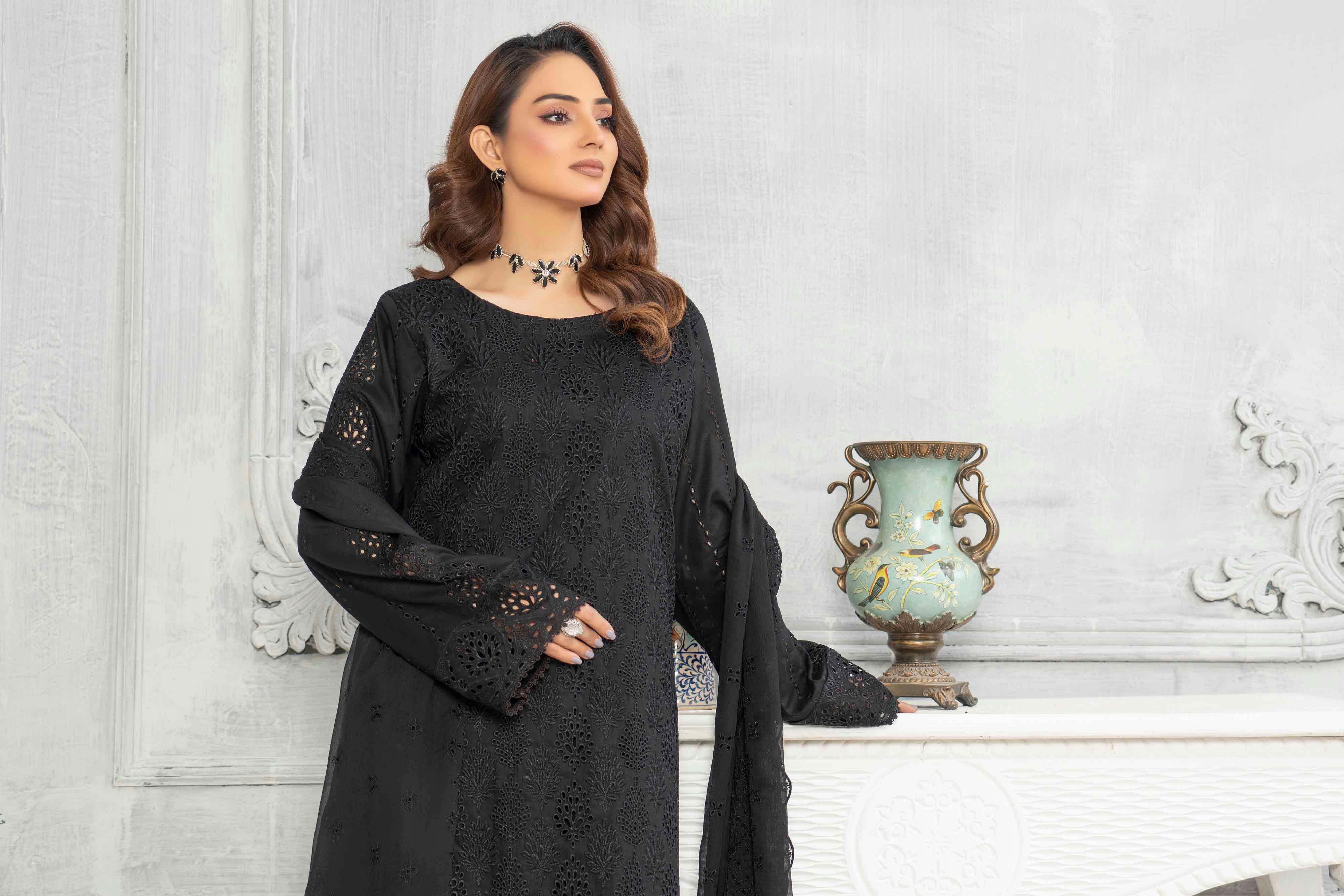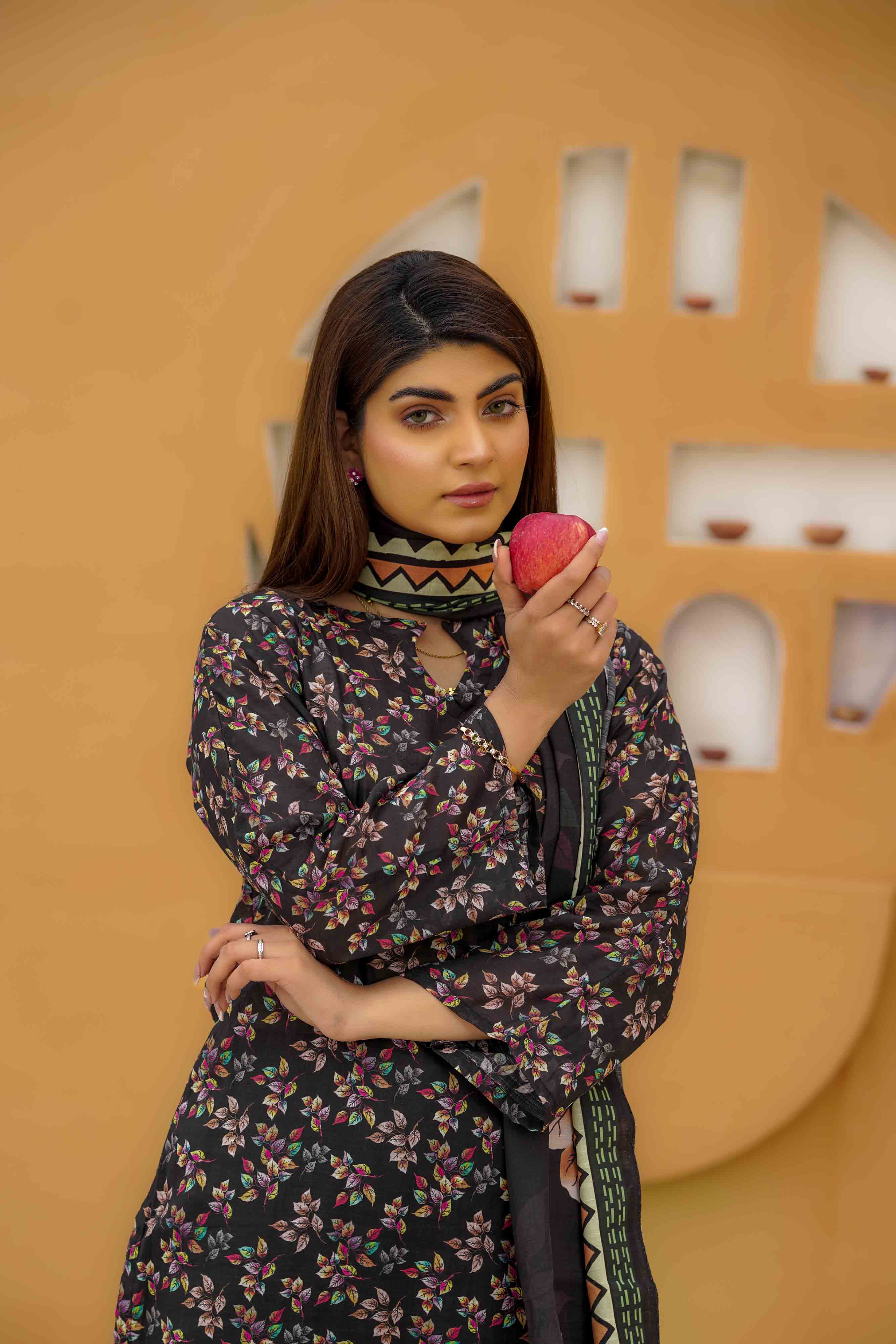 Luxury Black Printed Embroidered 3 Pcs Lawn Set