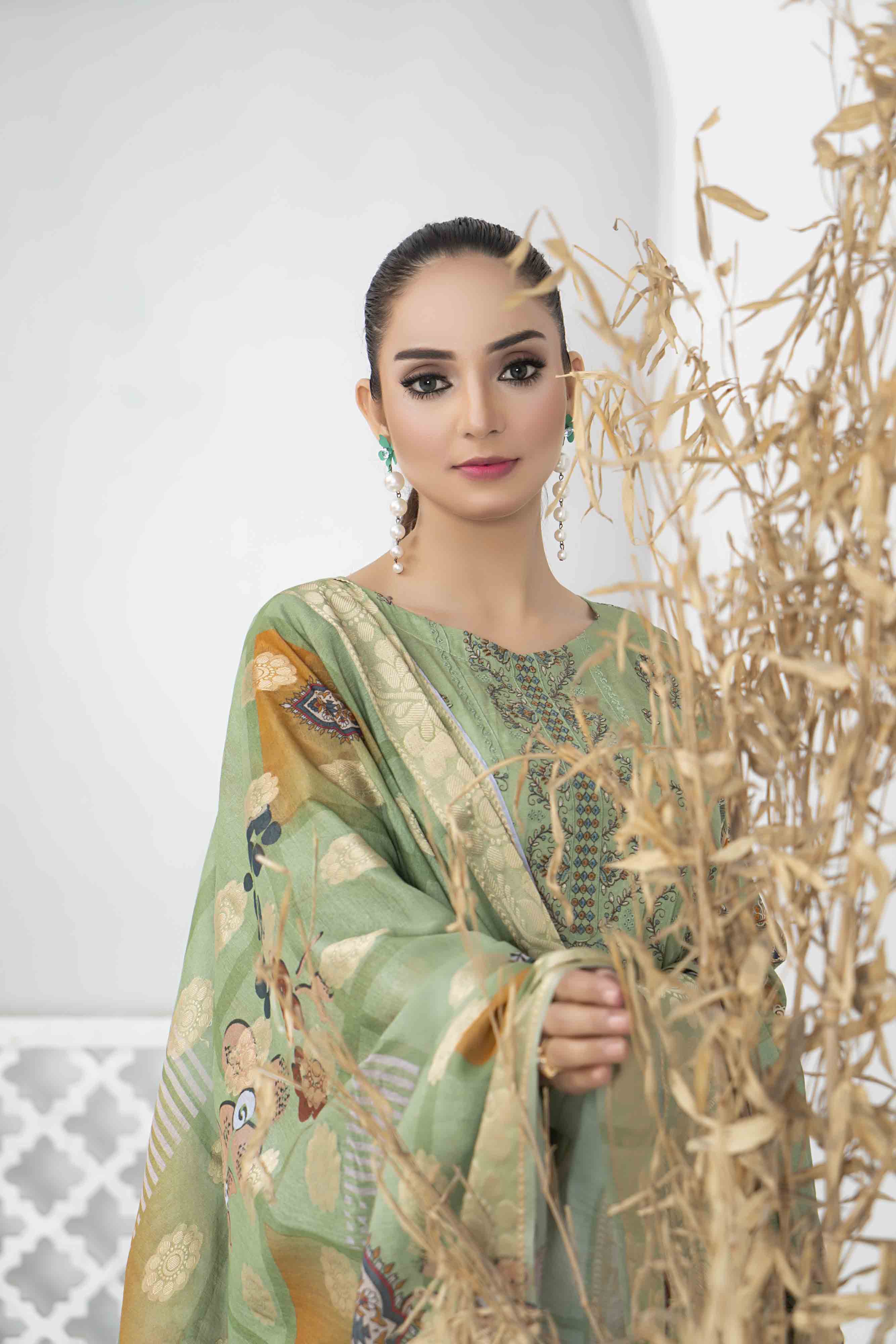 Luxury Pistachio Printed Embroidered 3 Pcs Lawn Set
