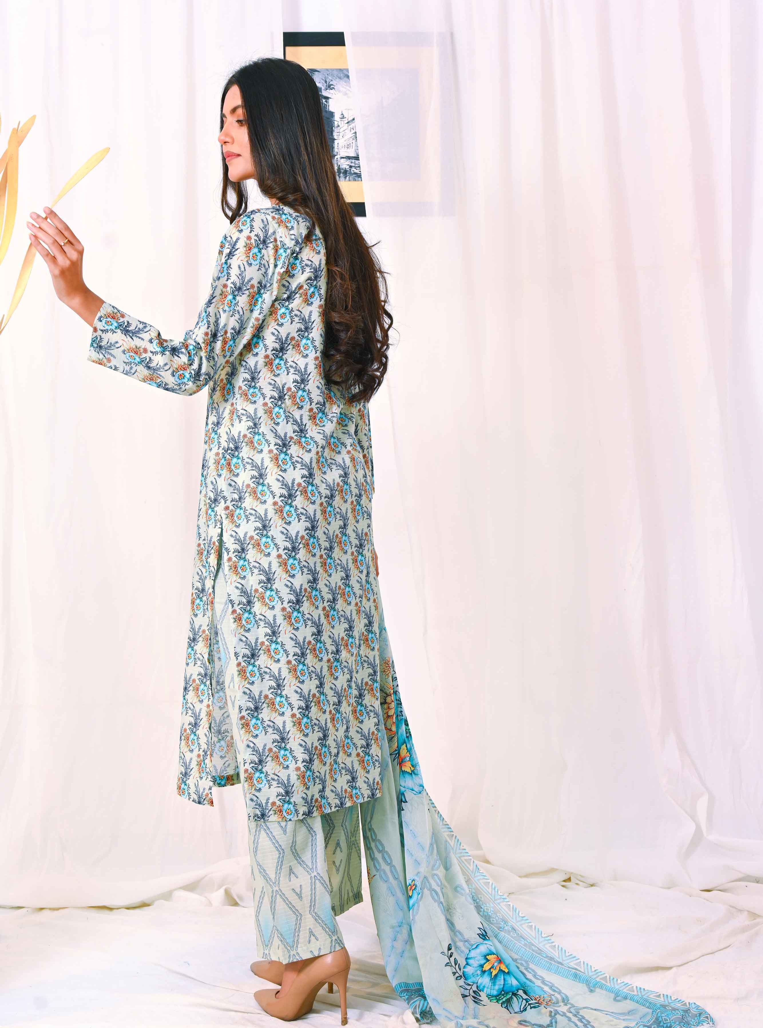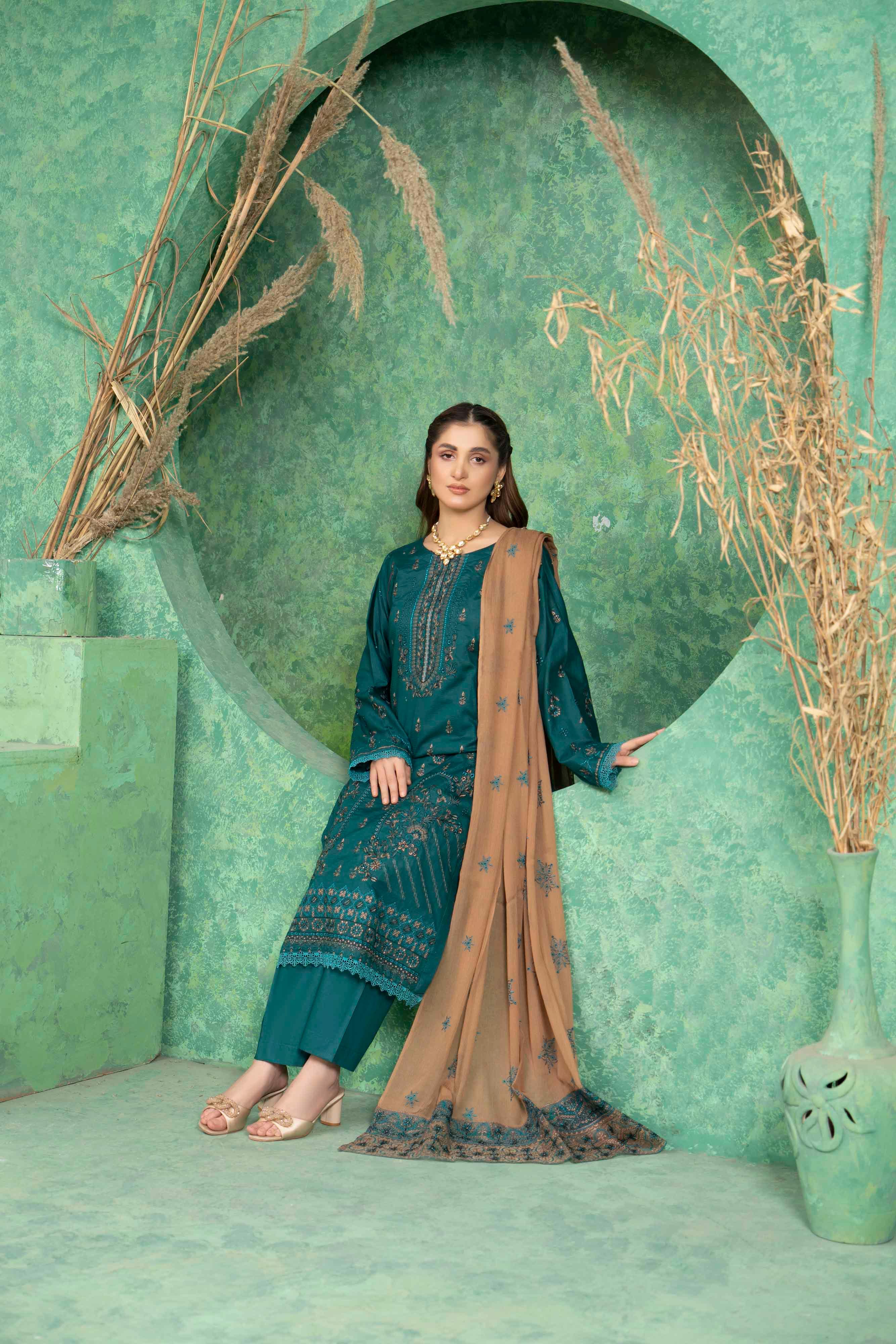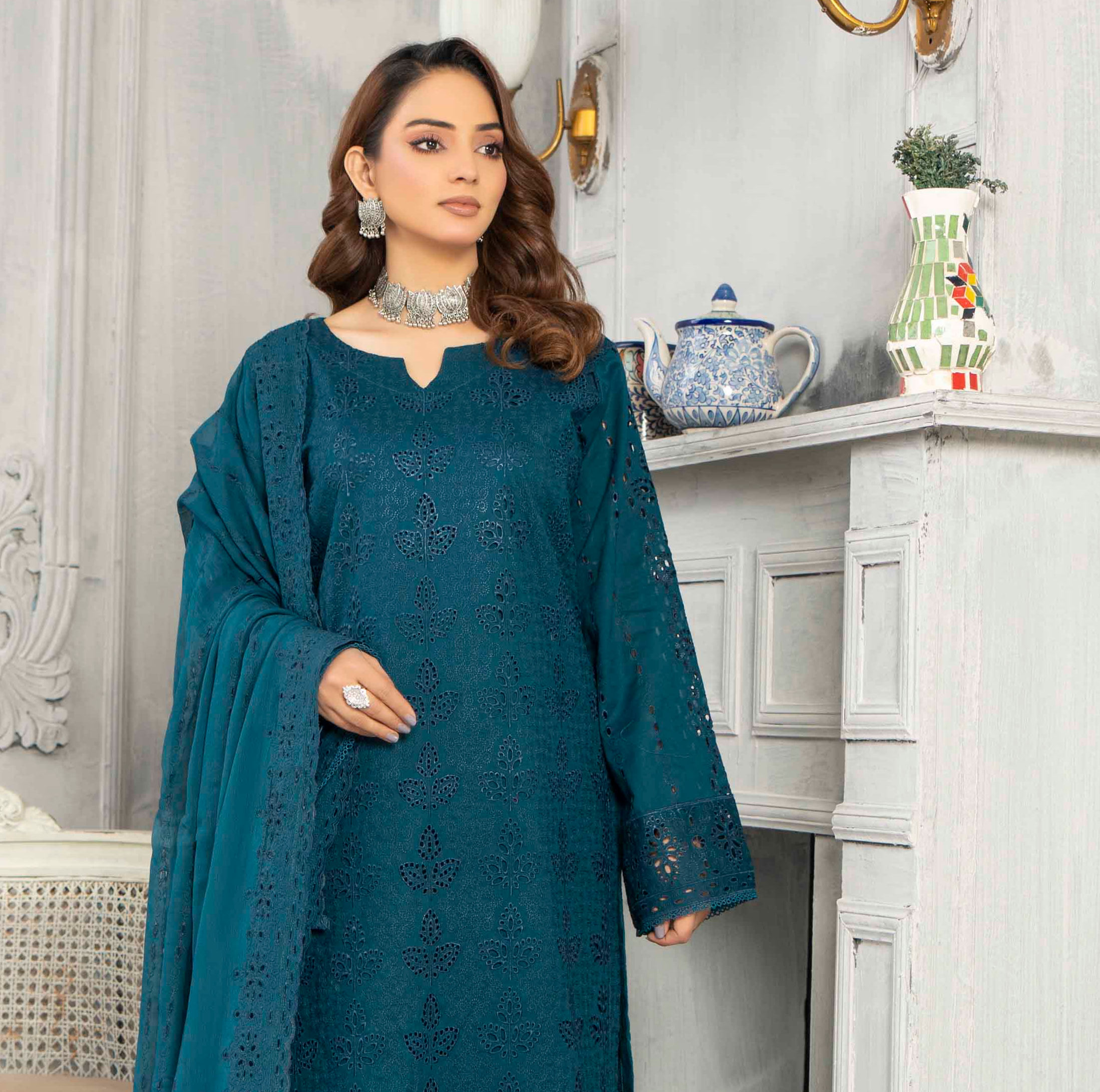 Luxury Teal Printed Embroidered 3 Pcs Lawn Set