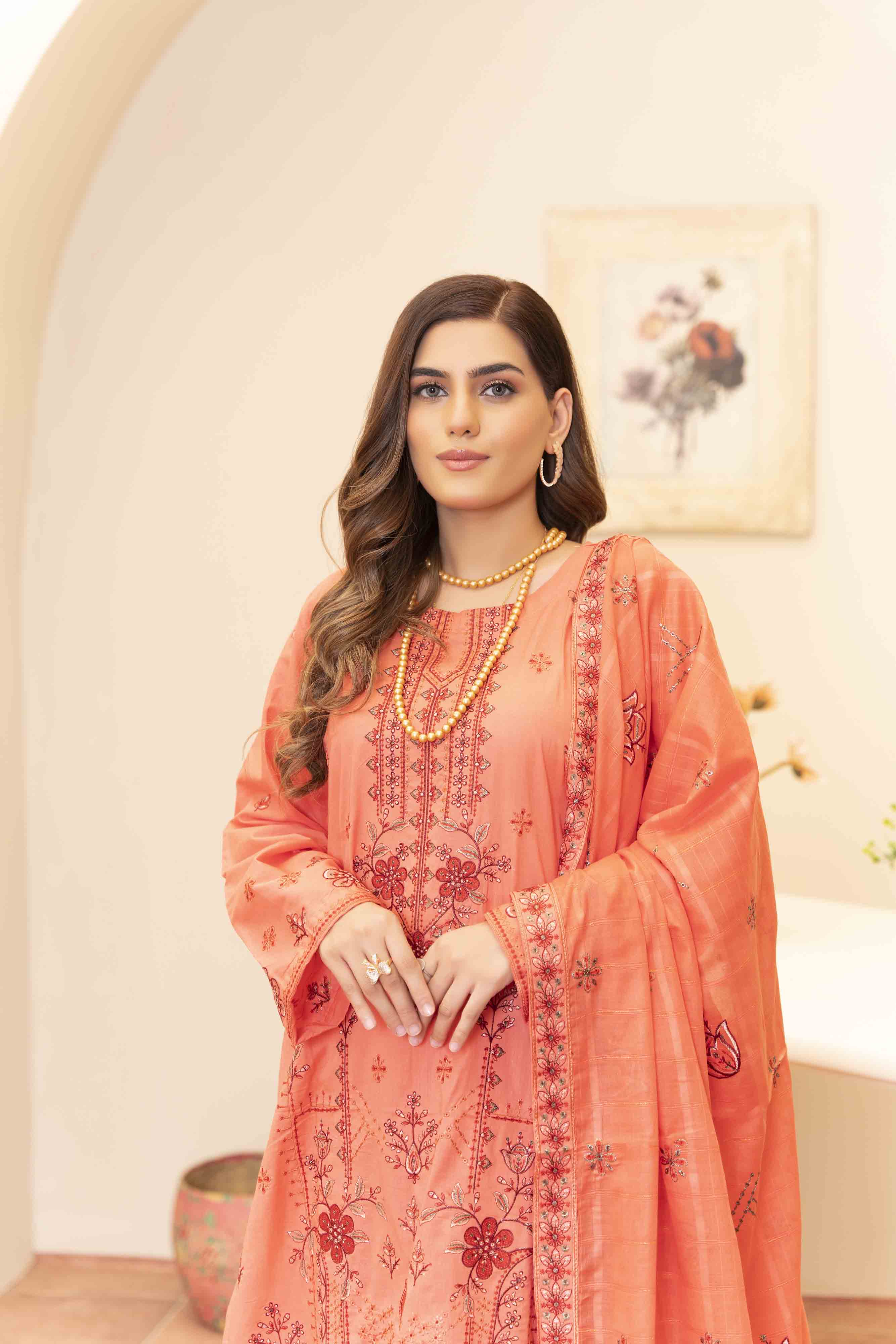 Luxury Peach Printed Embroidered 3 Pcs Lawn Set