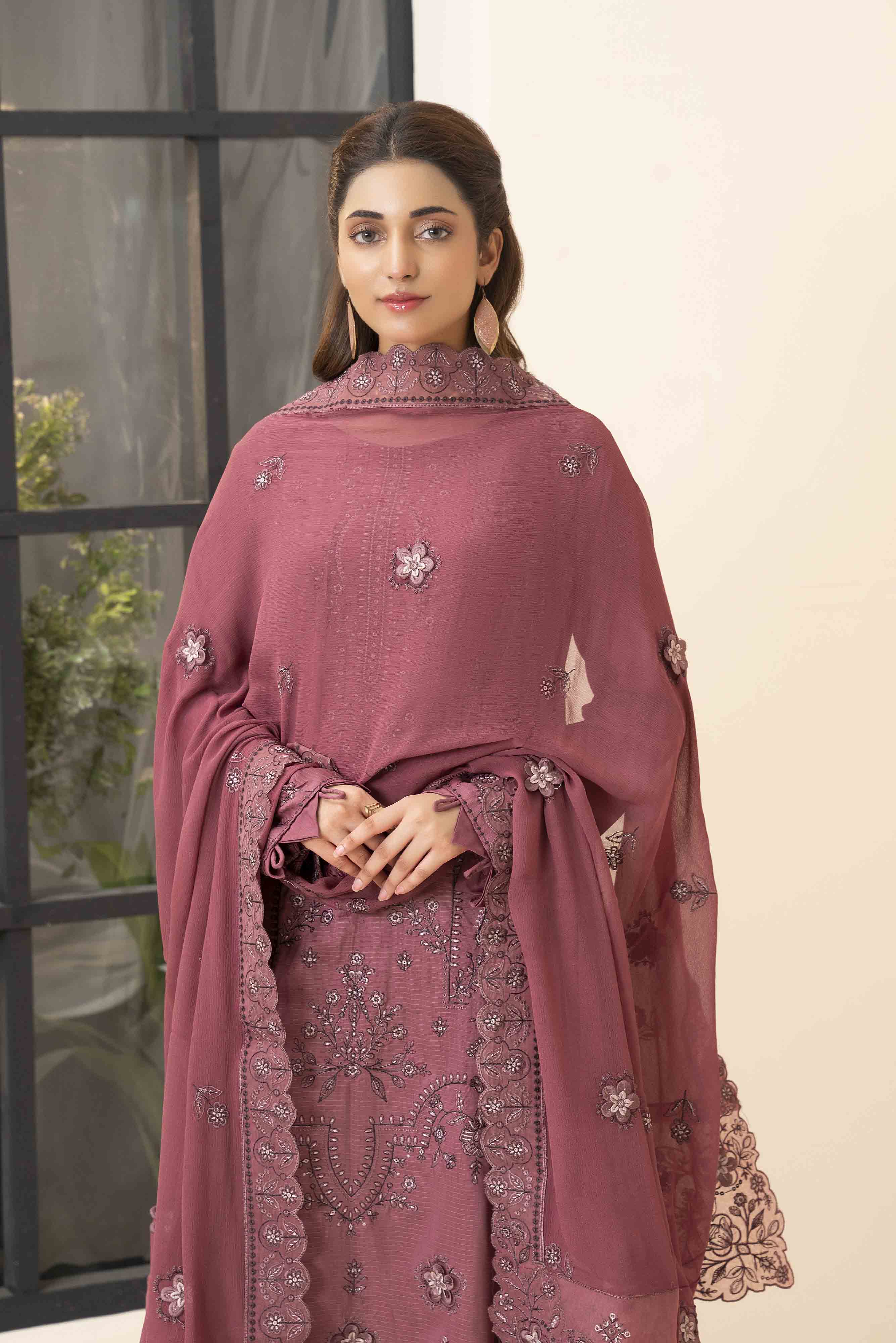 Mauve 3 Pcs Embroidered Viscose Doria Suit