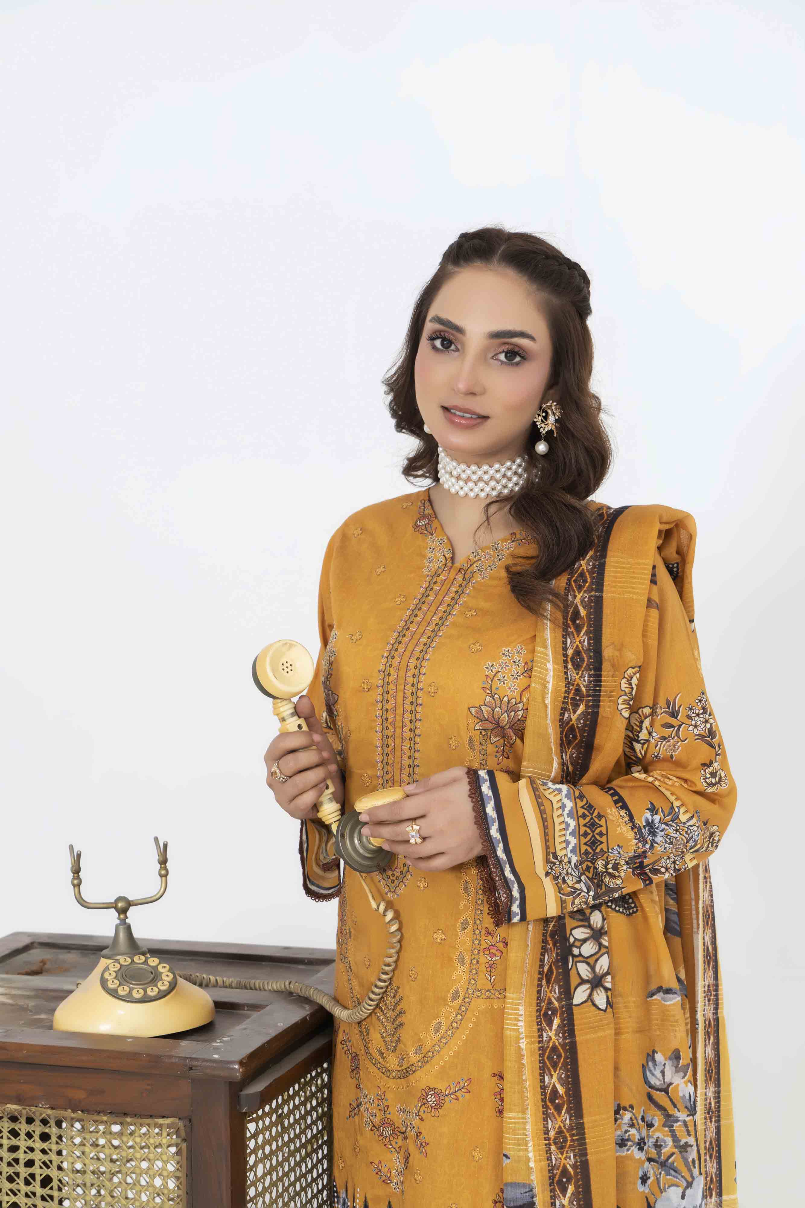 Luxury Mustard Printed Embroidered 3 Pcs Lawn Set