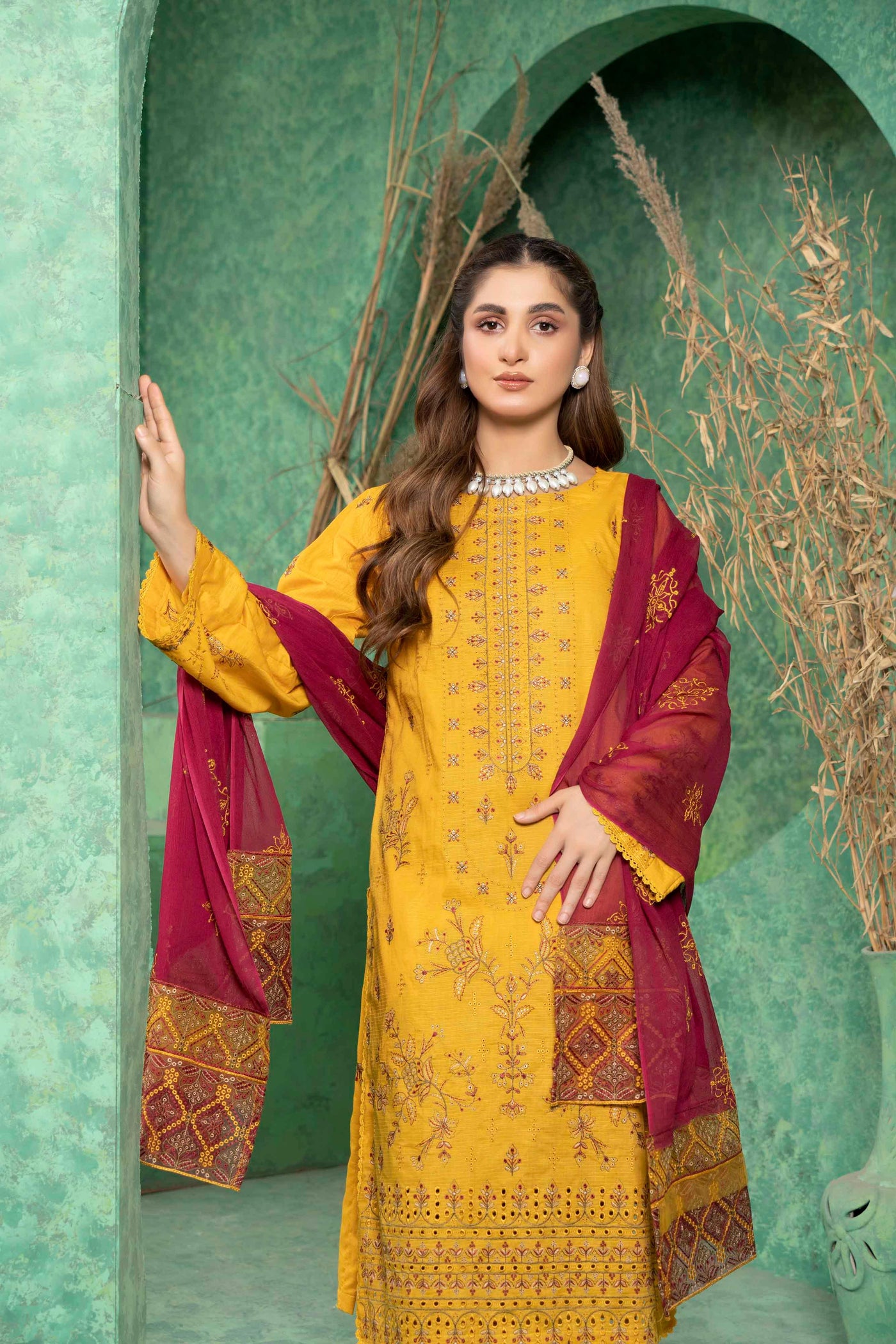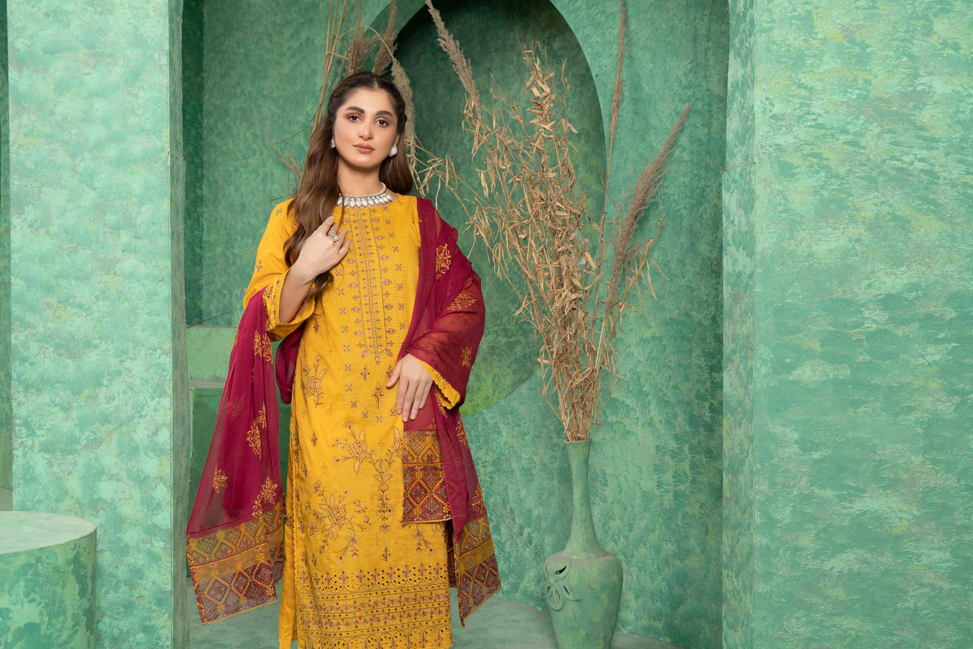 Luxury Yellow Embroidered Doria Lawn Set - UNSTICHED