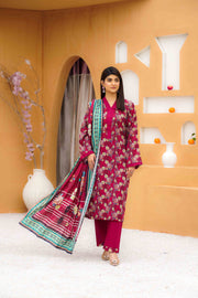 Luxury Red Printed Slub Lawn Set