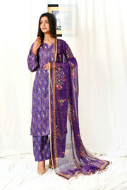 Luxury Plum Printed Doria Lawn Set - UNSTICHED